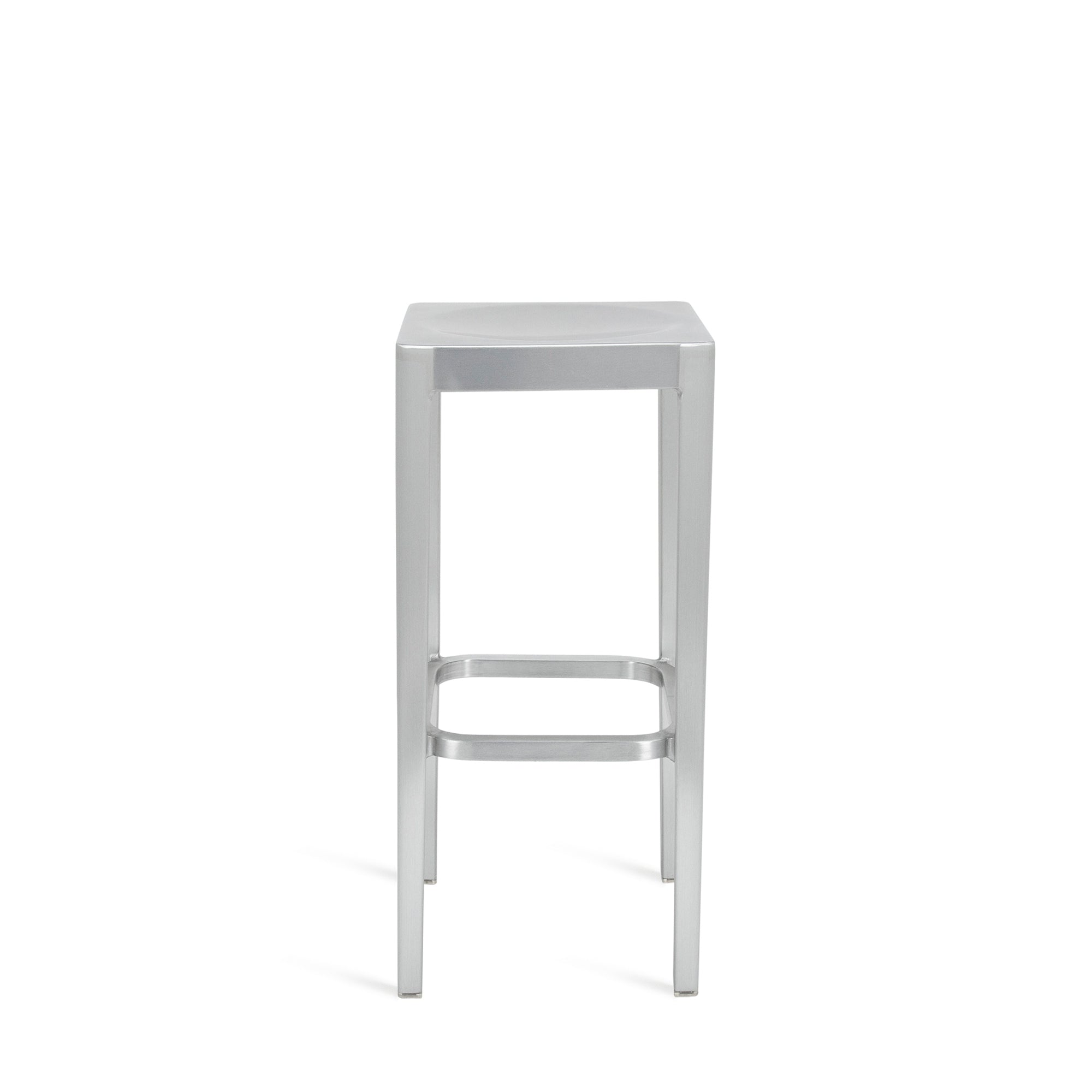 Originally designed by Philippe Starck for a MoMA exhibition, the Emeco Stool is one of our best selling stools. The shape - a circle in a square – is at once practical and sophisticated. Built by hand from 80% recycled aluminum, it is lightweight, non-corrosive, fire resistant and super strong. Guaranteed for life. Made in USA. Additional powder coat colors also offered - please contact us for details. Standard glides: soft plastic TPU glides for all-around use, including outdoor use. Alternative glides available at an upcharge.
