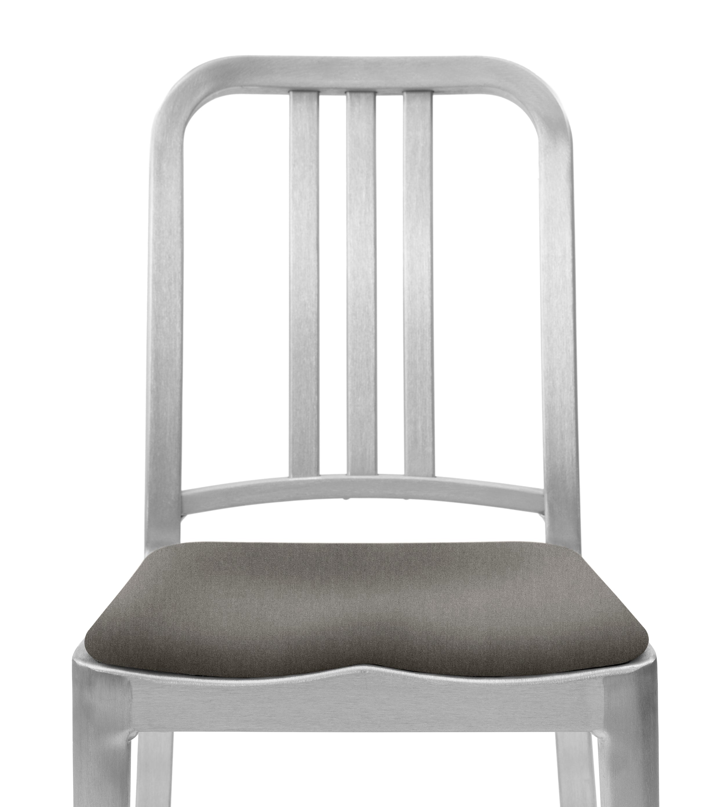 Emeco Upholstered Seat Pad in a variety of leather and textiles, including outdoor options. Suits: 1006 Navy, 111 Navy, Navy Wood, Heritage, Hudson and Icon. All seat pads are handmade using 100% recycled plastic substrates and fire-rated foam, CAL 133 compliant. Thickness 5/8" (16mm).
